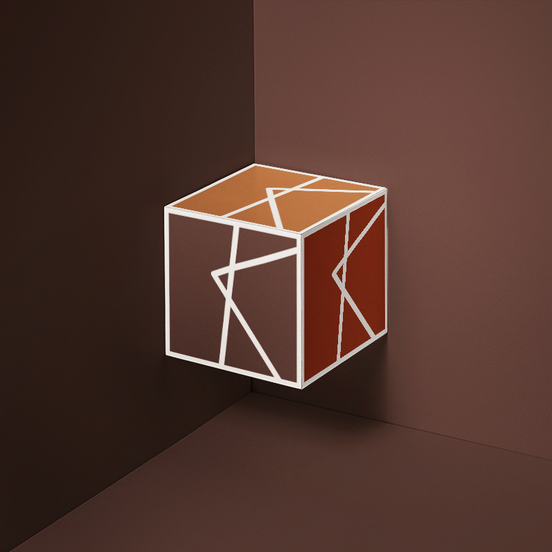 La carte de visite s’inspire du logo et des angles formés par la lettre « K ». Les couleurs sont chaudes et chaleureuses pour évoquer le bien être chez soi qui est l’essence même du Hygge. Elles font aussi référence aux matériaux utilisés par Karl pour sa décoration (noyer, bronze et cuir).